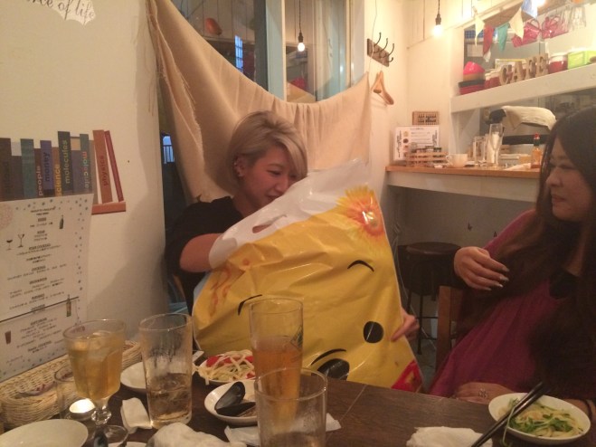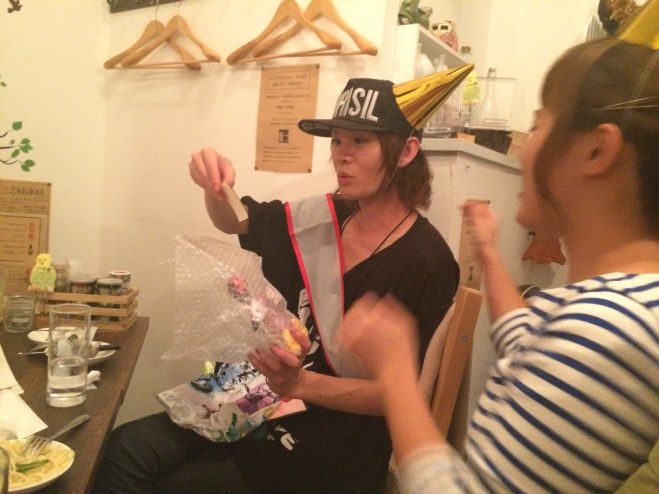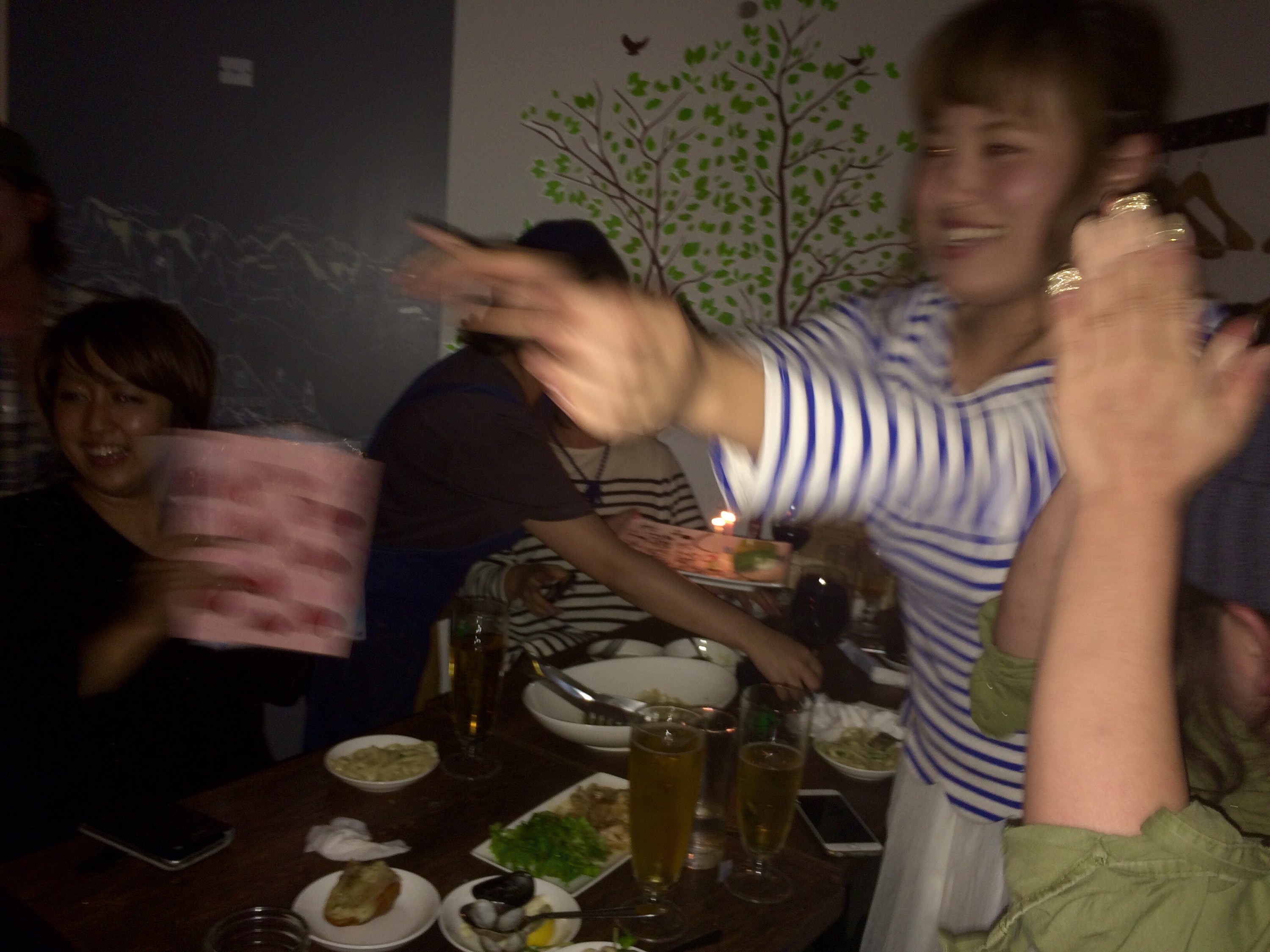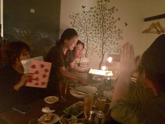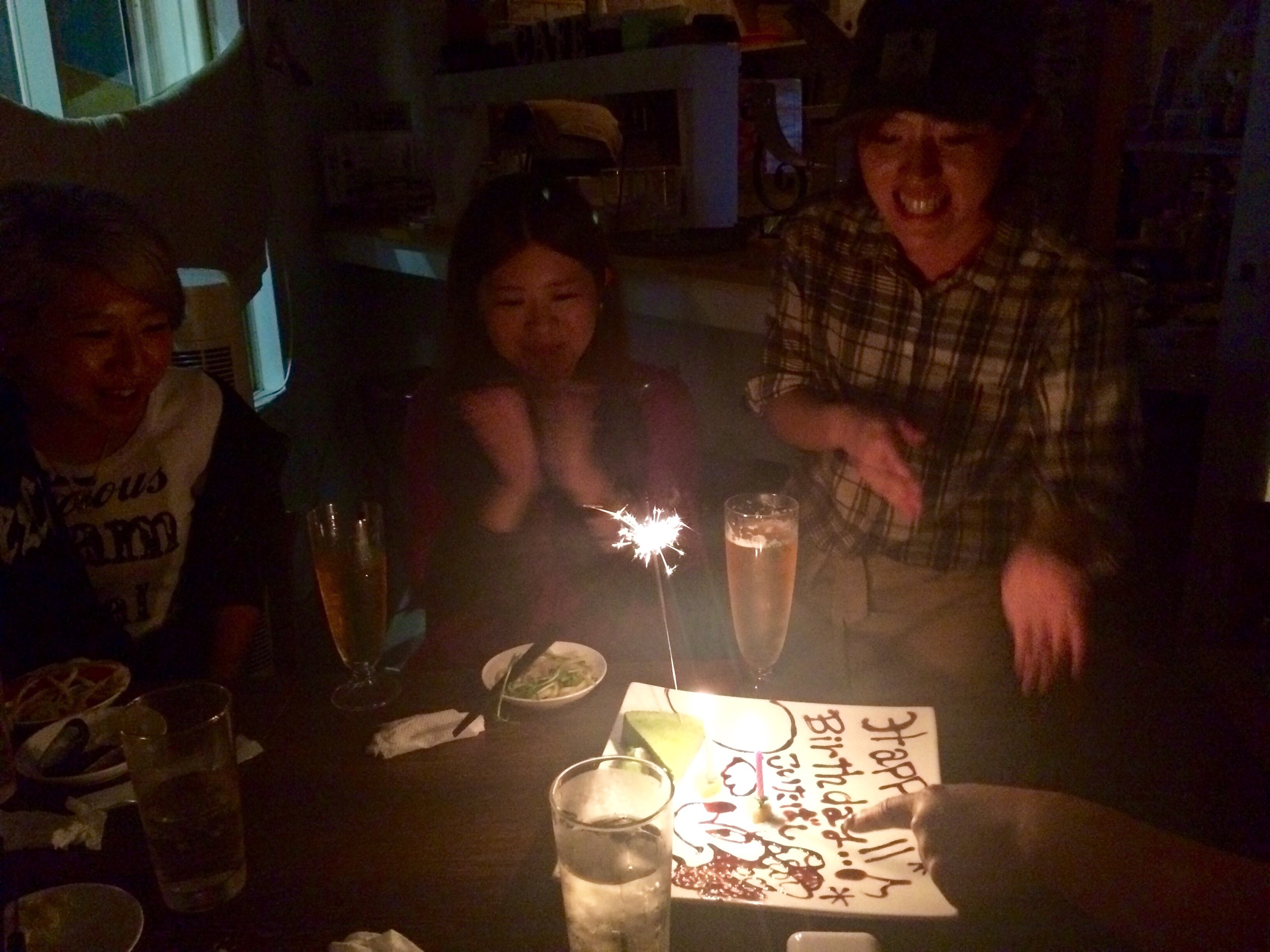 昨日はaptの合併祝い&8月の誕生日のスタッフ達のお祝いをサロンの近くの店でやりました!!