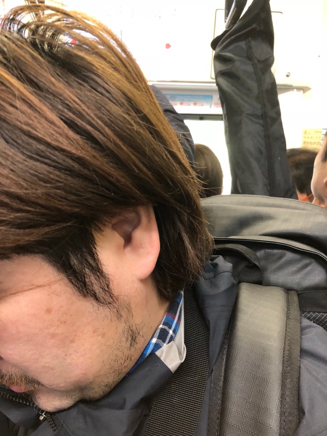 秋葉原で総武線に乗り換えたら座れるようになるのでそれまでの辛抱。